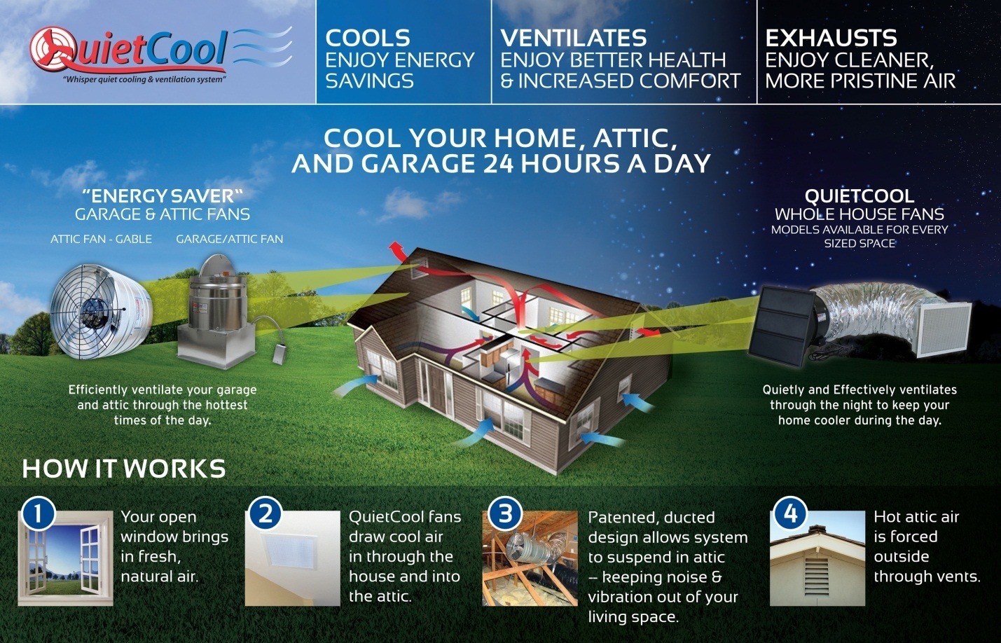 Quality Sheet Metal Heating & Air Inc is an Authorized QuietCool Dealer, ensuring whisper-quiet ventilation and cooling from your whole-house fan. The system requires less energy than a conventional air conditioner, reduces the workload of the air conditioner and freshens the indoor environment. It works by drawing cooler, outdoor air into the home and expelling warmer, stale air out the attic vents. Start with a free estimate from Quality Sheet Metal Heating & Air Inc and we’ll design the perfect system for your needs!